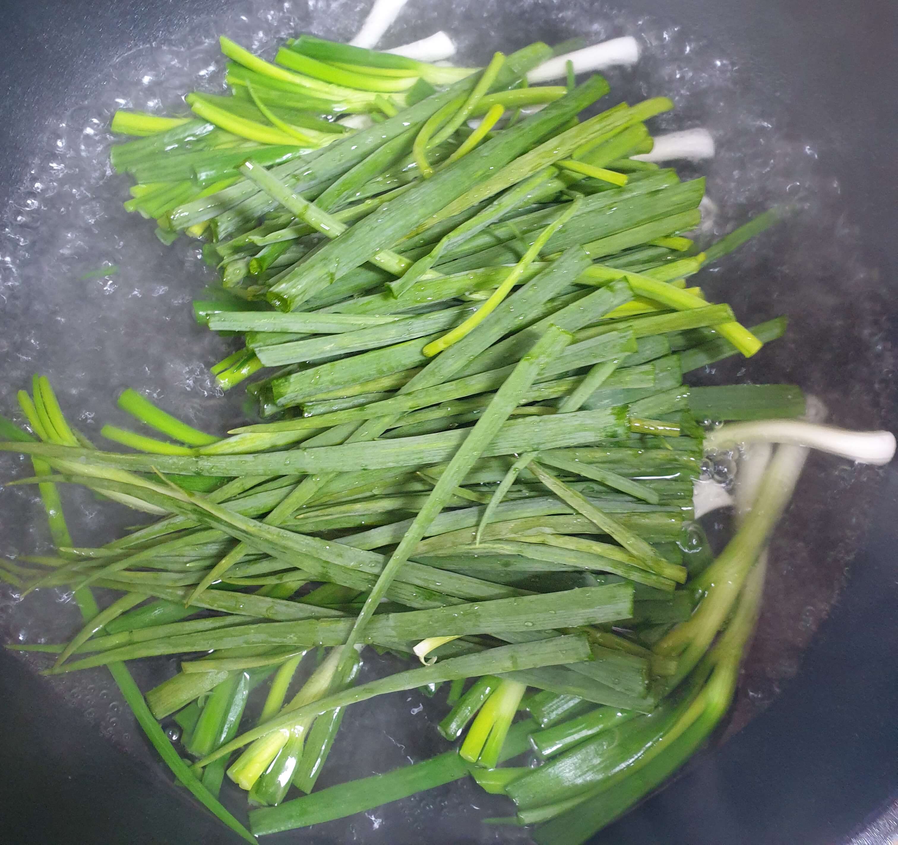 쪽파 데칠 물을 팔팔 끓여줍니다.