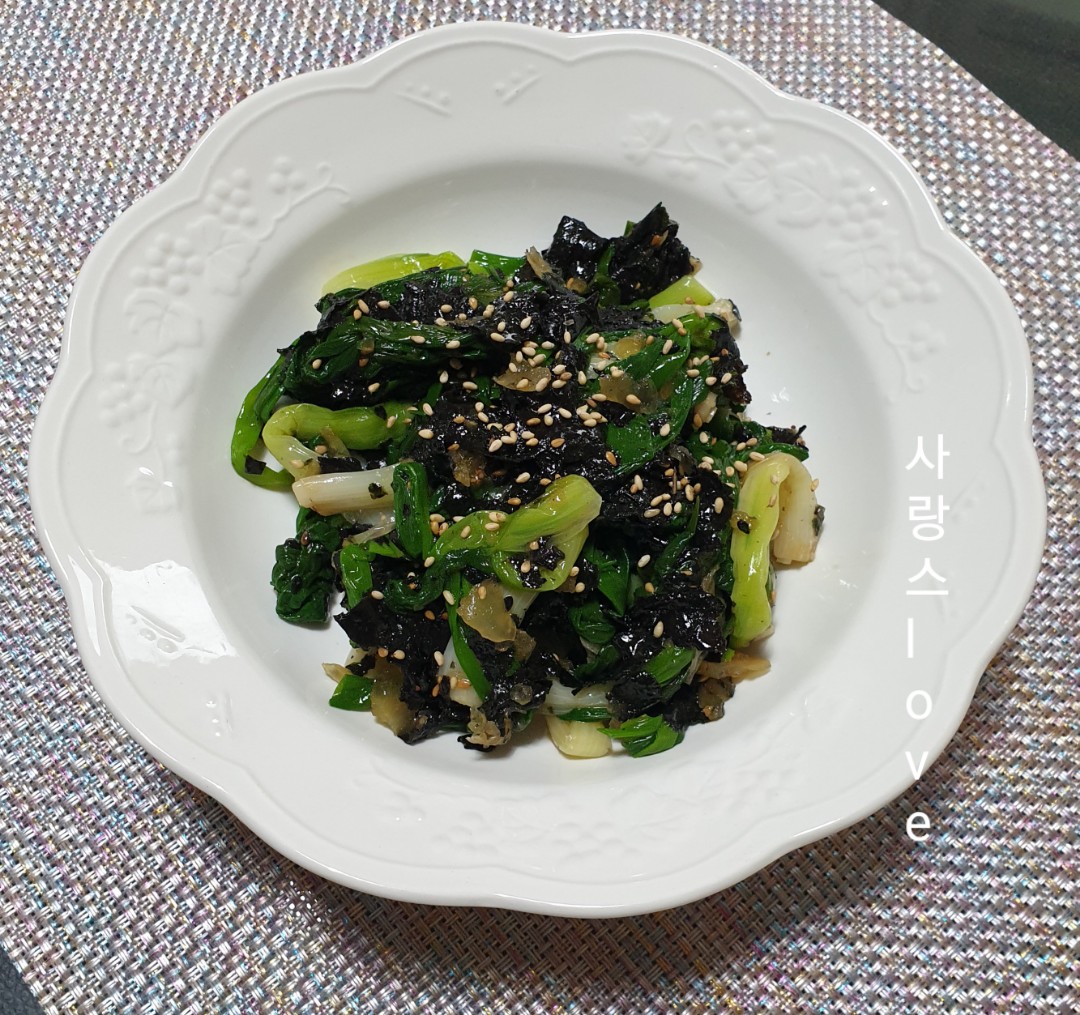 김까지 넣어 더 특별한 맛이 나는 쪽파 무침 이랍니다.